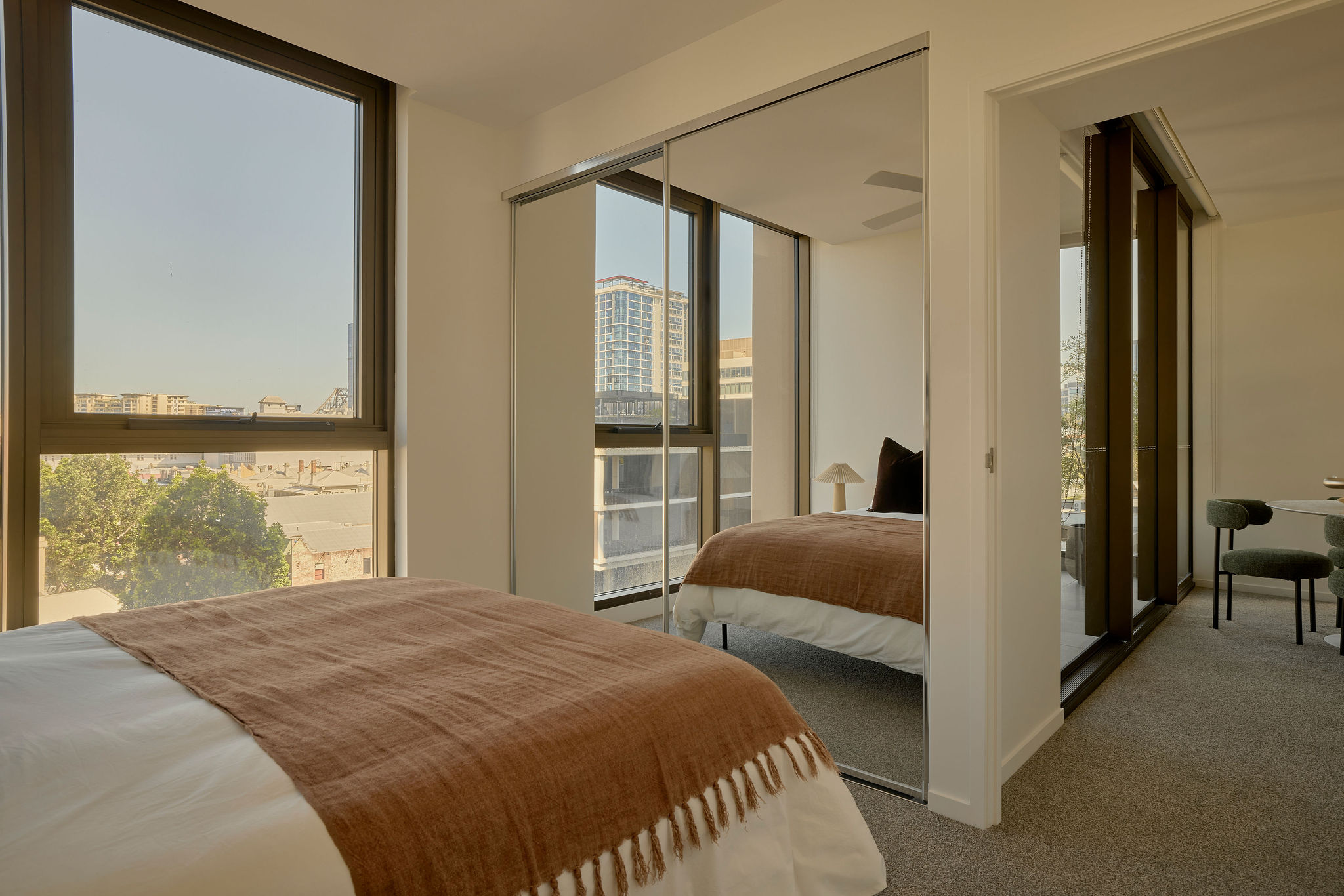 - Fitted wardrobes with full-height mirror, hanging rail and storage
